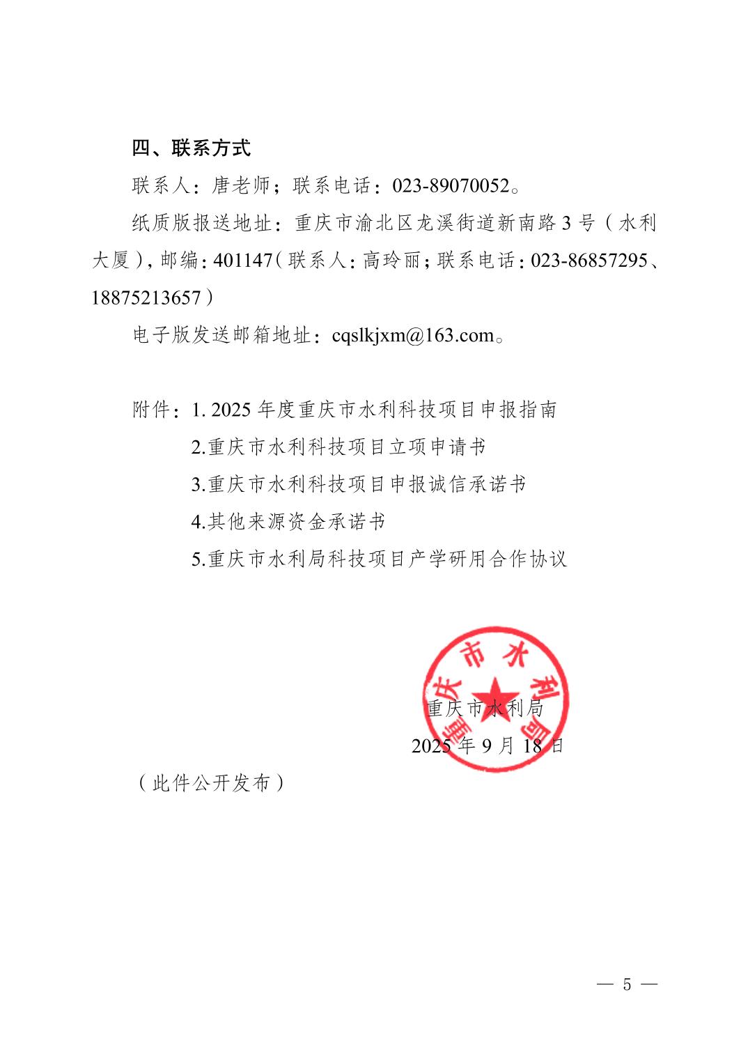 重庆市水利局关于申报2025年重庆市水利科技项目的通知