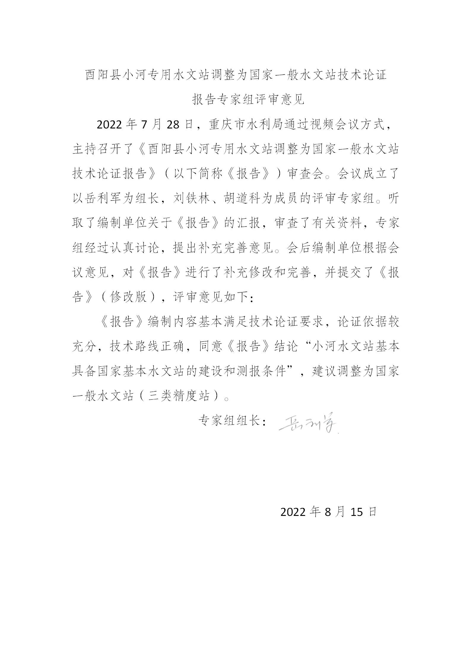 9、酉阳县小河专用水文站调整为国家一般水文站技术论证报告专家评审意见